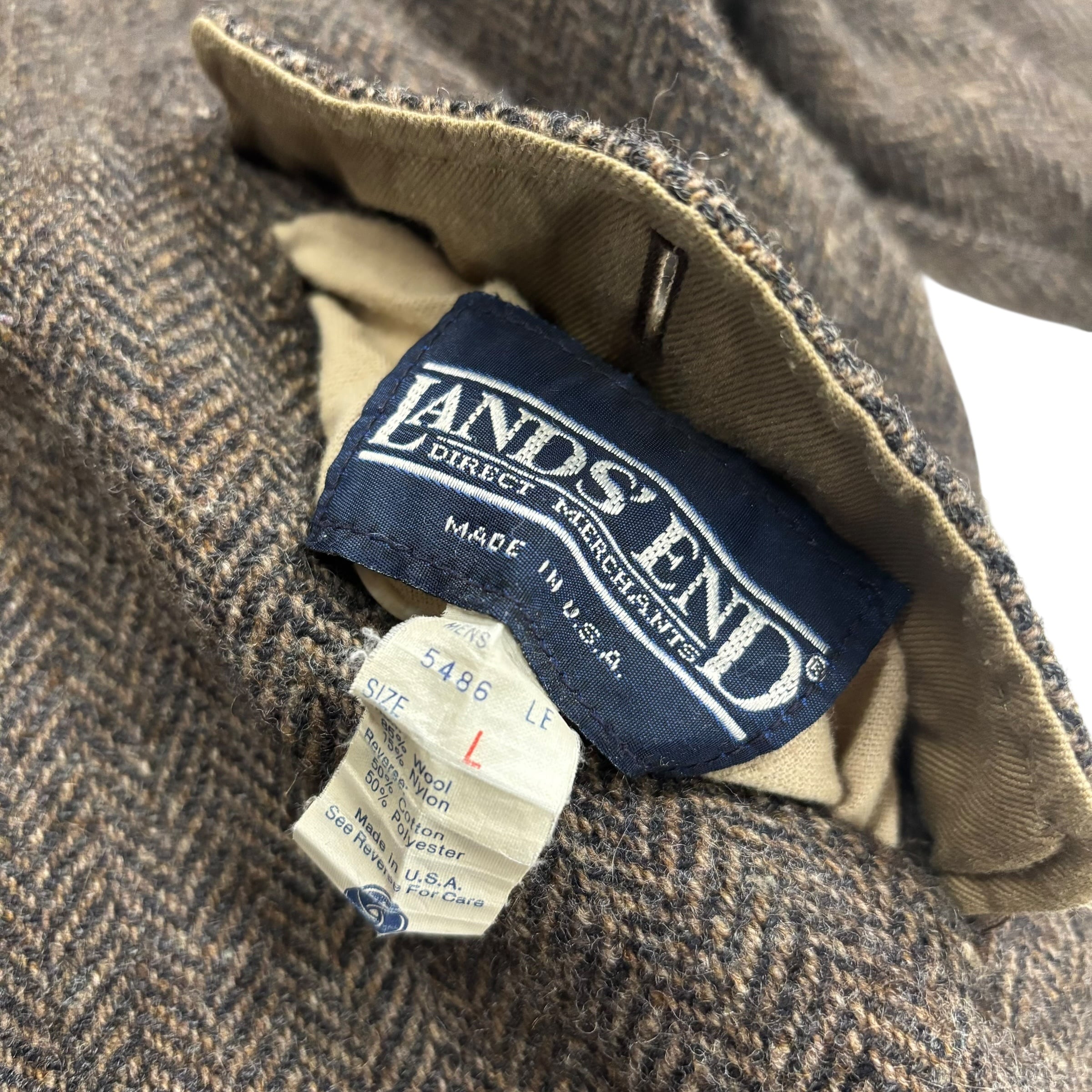 80年代"ランズエンド"ヘリンボーンツイードリバーシブルジャケット
